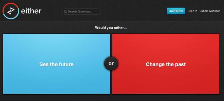 The site “either.io” posits “Would you rather….” type questions such as “Would you rather win an Oscar or win the Nobel Prize?”