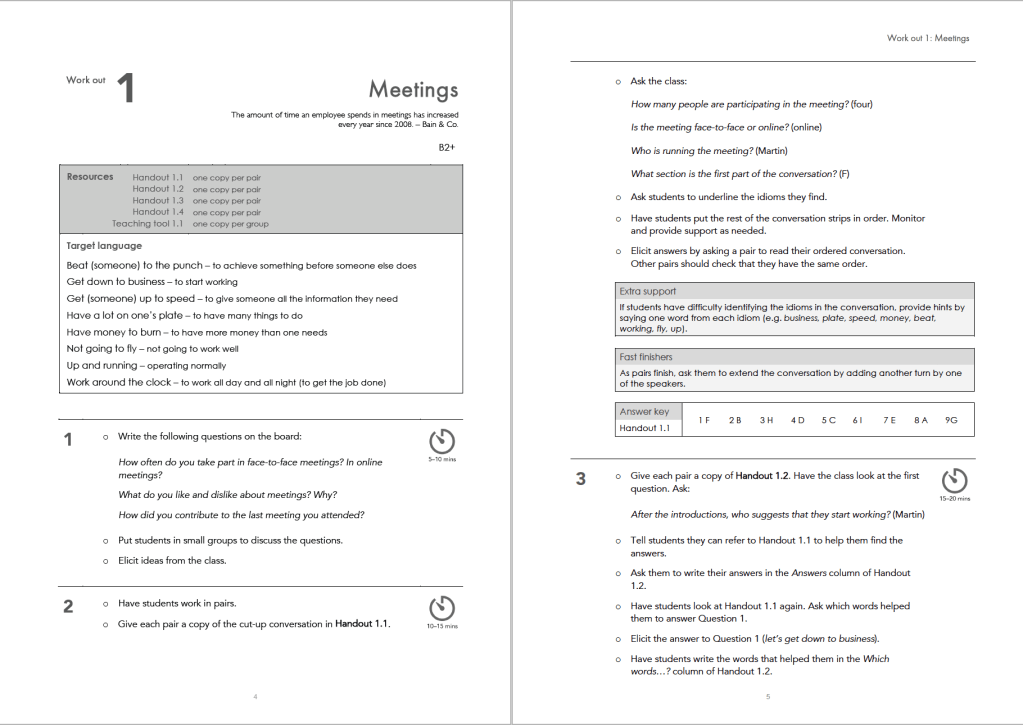 The latest in the Work it Out series from Prosperity Education focuses on Business Idioms and one of the immediate draws for me is the way the structure of the book lends itself to supplementing a standard syllabus / coursebook structure.